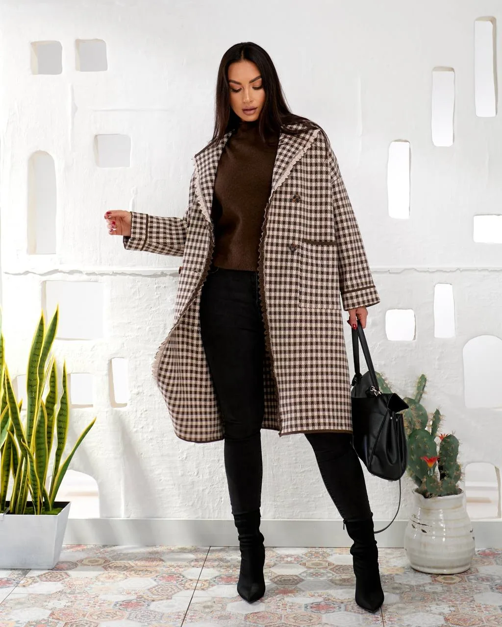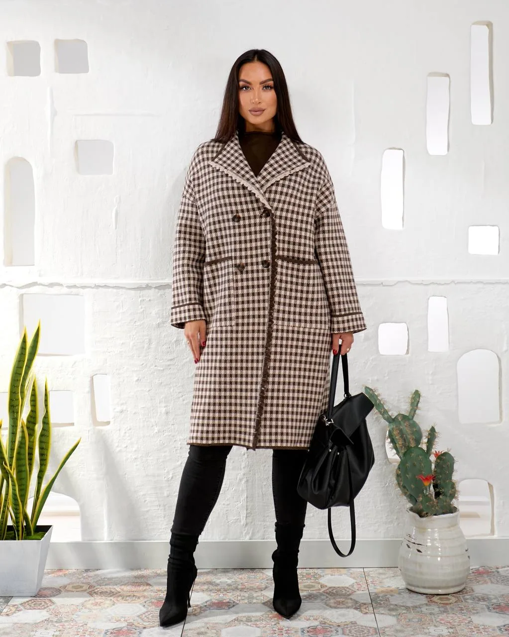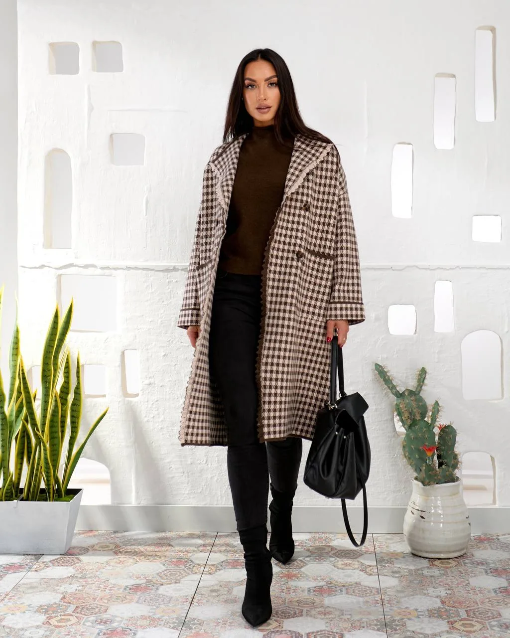 Це жіноче пальто з кашеміру в кліточку поєднує практичність, елегантність і комфорт. Воно стане чудовим вибором для жінок, які цінують якість та стиль.