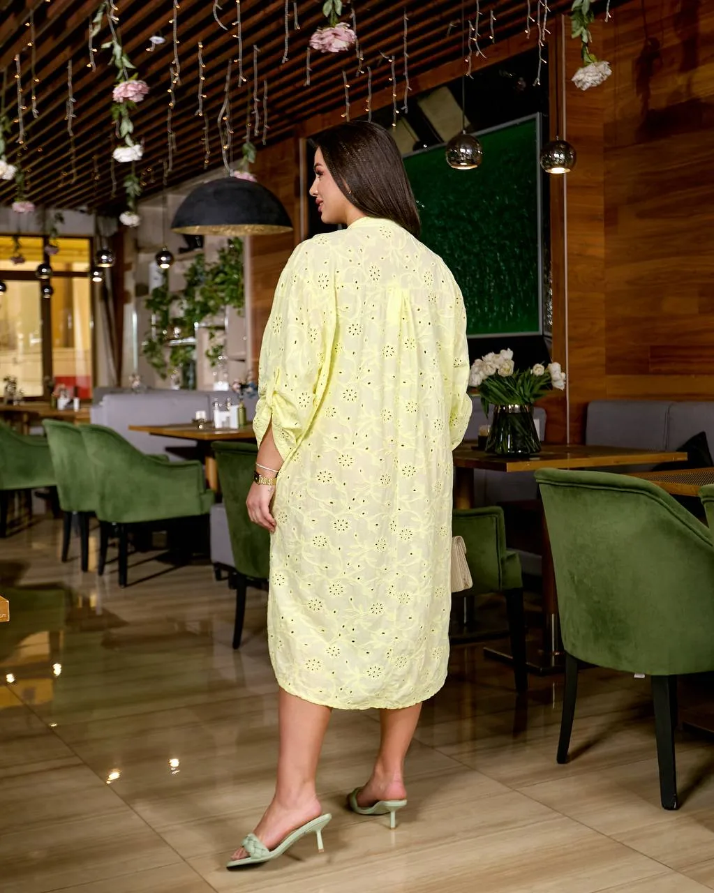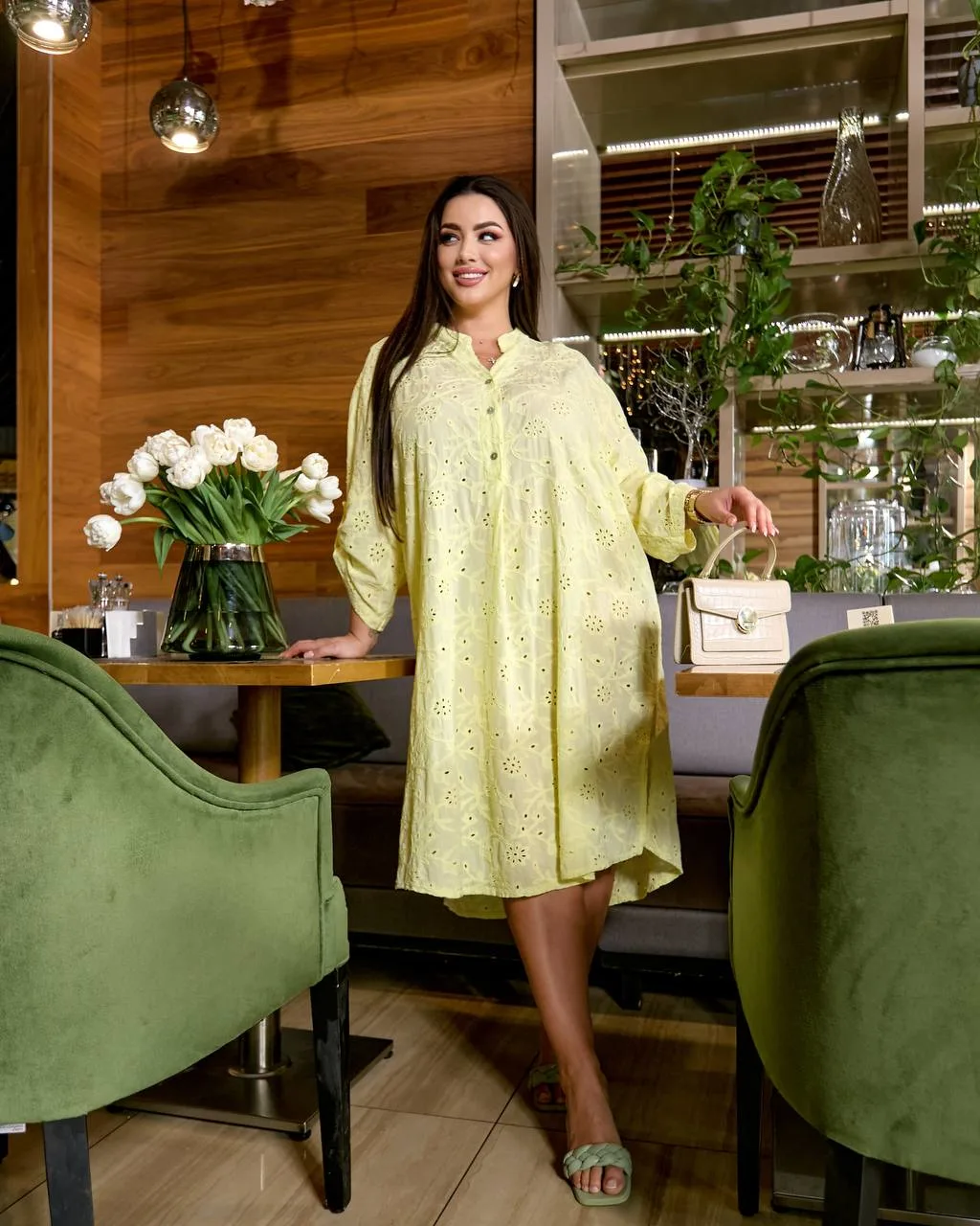 Відчуйте справжню легкість та комфорт з нашою новою сукнею з натурального перфорованого котону. Це ідеальний вибір для літньої спеки: тканина дозволяє шкірі дихати, а вільний крій дарує відчуття повної свободи.