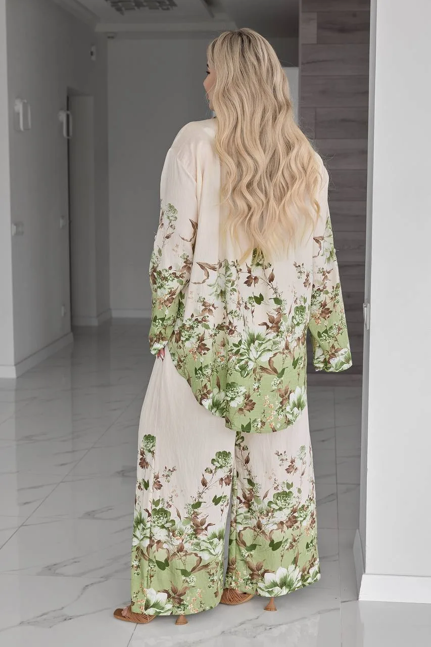 • Розпродаж! Елегантний жіночий костюм з віскози з квітковим принтом (батал 54–62)