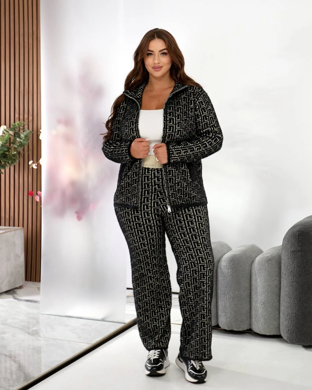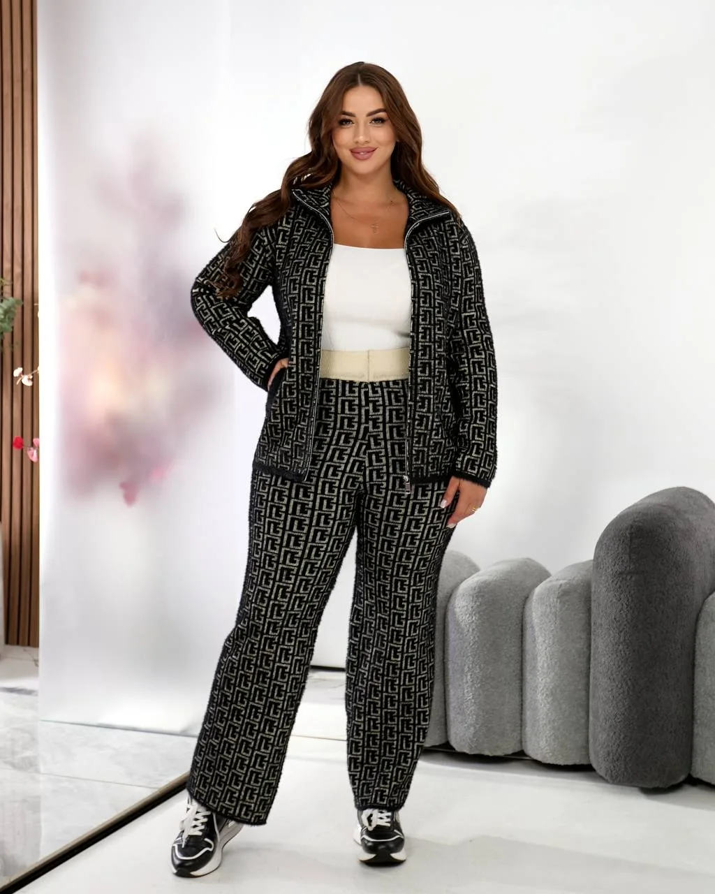 Жіночий костюм з альпаки (48–52) – стиль та комфорт у білому, коричневому та чорному кольорі