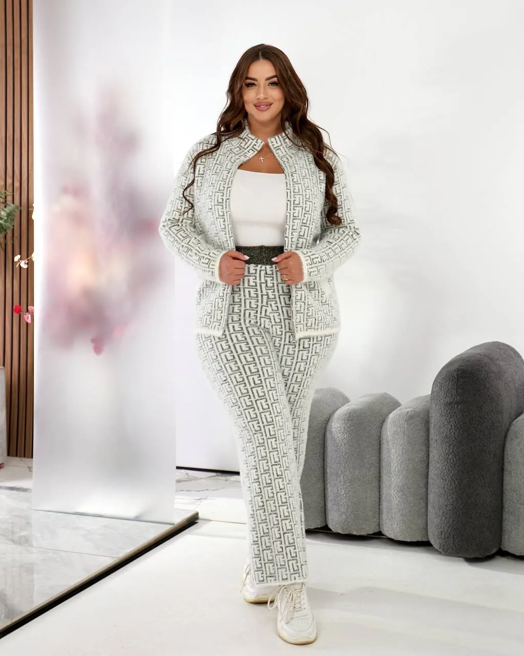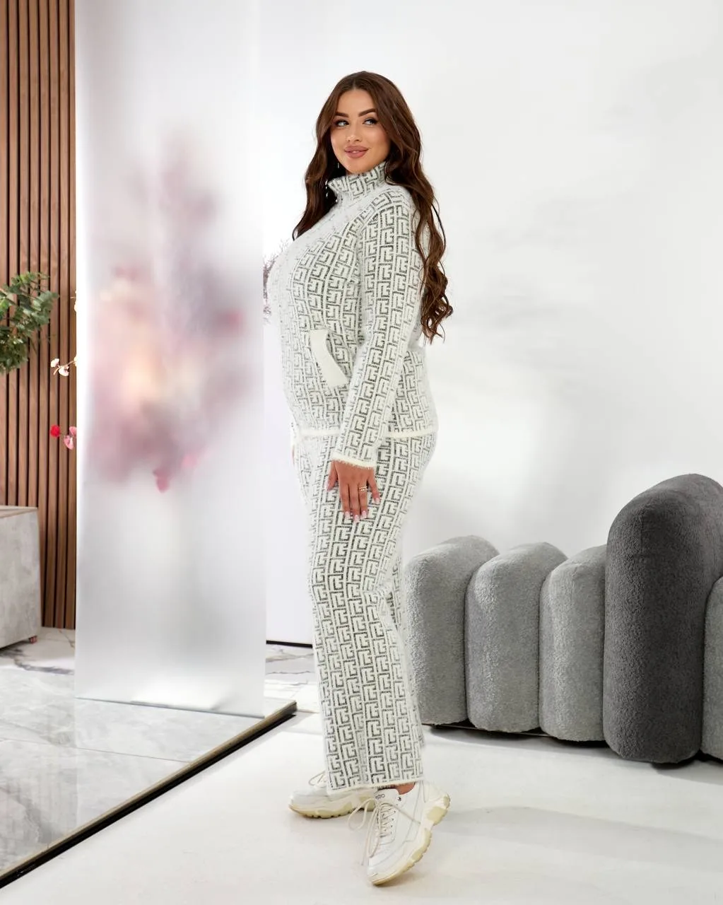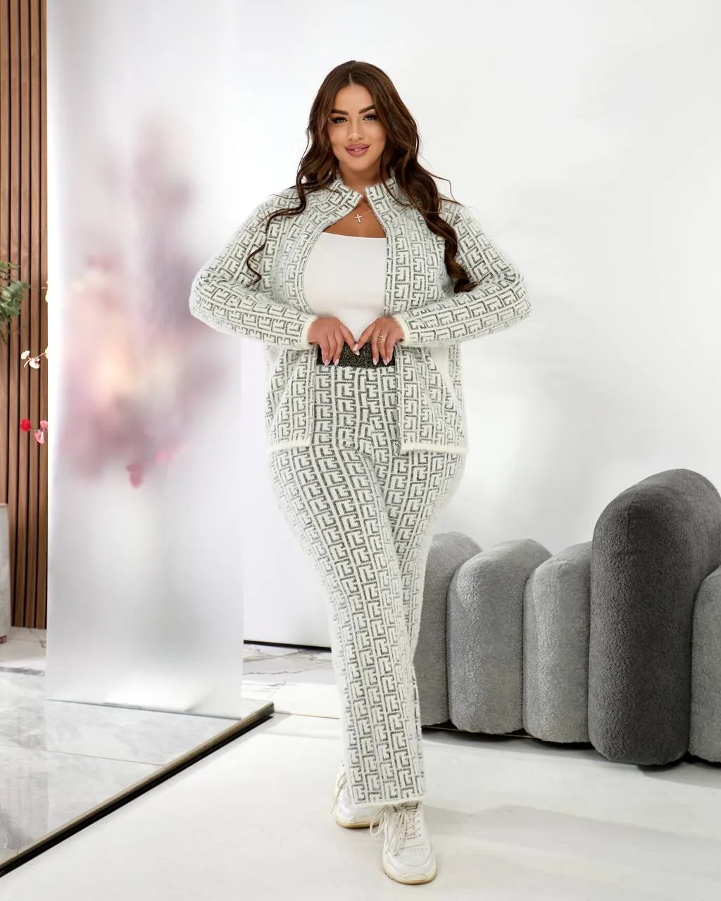 Жіночий костюм з альпаки (48–52) – стиль та комфорт у білому, коричневому та чорному кольорі
